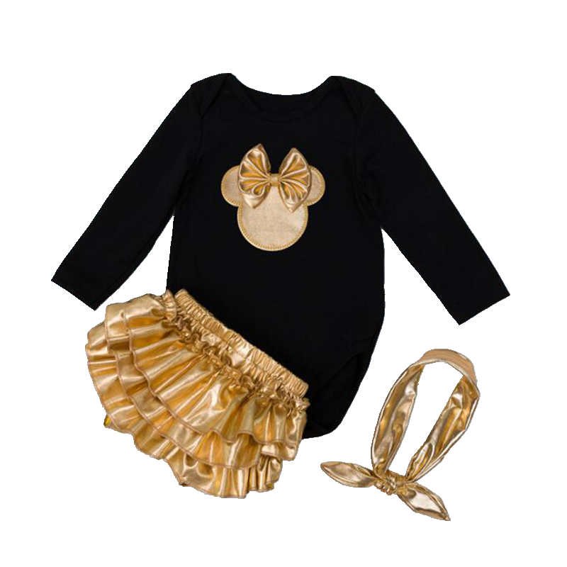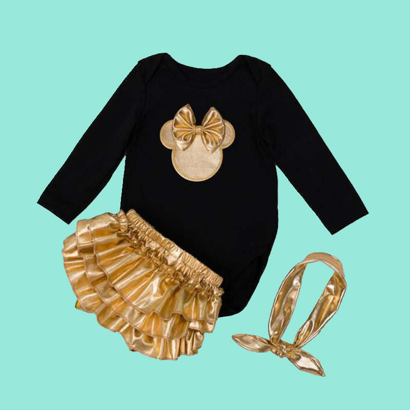 Minnie Newborn Girl Clothes Set Cotton Full Sleeves Baby Bodysuit + Headband + Ruffle Bloomer Set